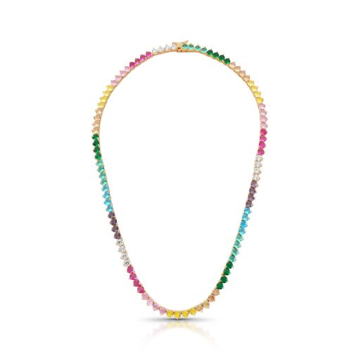 Colar Riviera Corações Coloridos Fecho Gaveta com Trava Lateral - 40cm