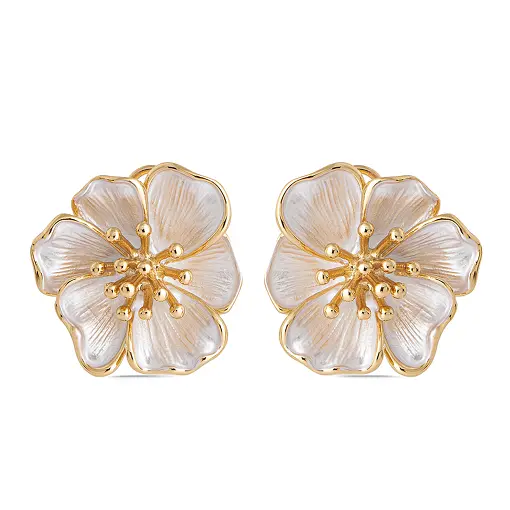 Brinco Orgânico Flor Serena Esmaltado Perolado